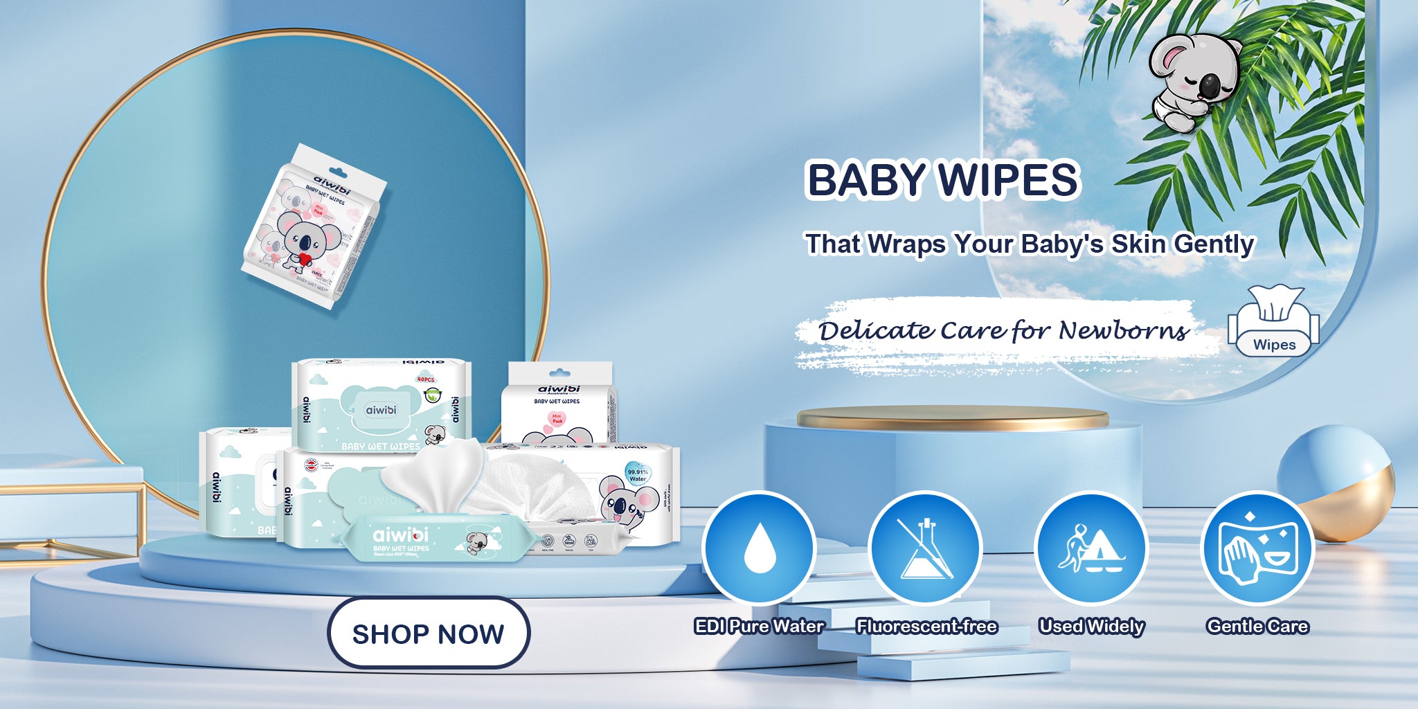 Our manufacturing center uses a 100,000 class purification system, dust-free workshop, disinfection room with FDA & GMPC certifications. Aiwibi’s skin-friendly baby wet wipes use soft spun lace non-woven fabric in our unique and effective enriched formula.